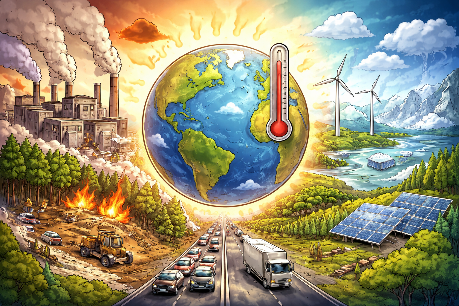 Mennesker påvirker jordens klima i stor skala gjennom forskjellige aktiviteter som har endret atmosfærens sammensetning og jordens fysiske systemer over tid. Den mest sentrale måten mennesker påvirker klimaet på er ved utslipp av såkalte klimagasser, som bidrar til en økt drivhuseffekt. Disse gassene omfatter blant annet karbondioksid (CO₂), metan...