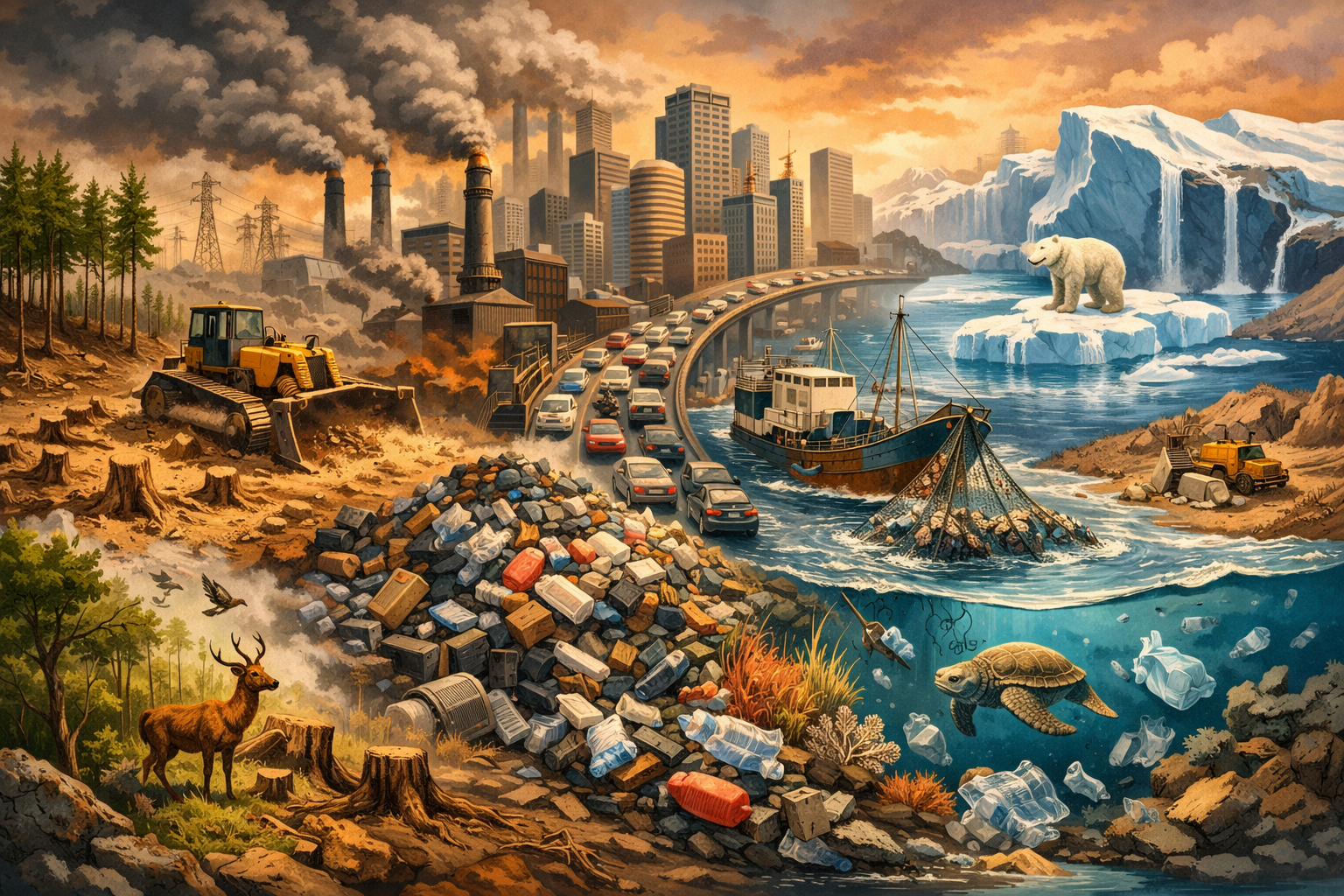 Mennesker ødelegger naturen først og fremst fordi samfunnet er bygget rundt behov for ressurser, vekst og komfort. For å skaffe energi, mat, boliger og varer tas det i bruk stadig mer land og naturressurser. Dette fører til avskoging, utbygging og inngrep som endrer eller ødelegger naturlige økosystemer.