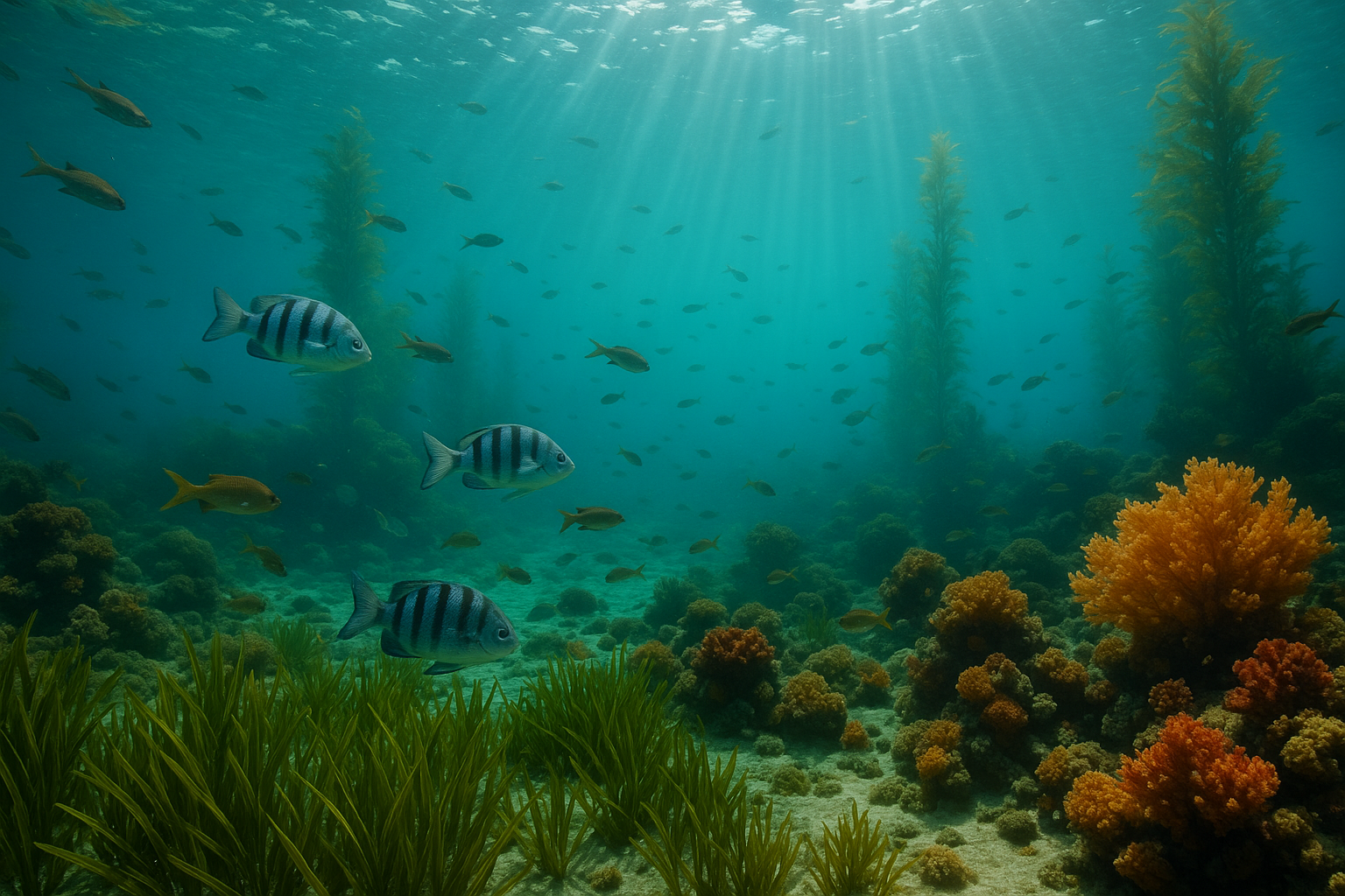 - Mangfold av arter: Havet huser et bredt spekter av organismer, inkludert bakterier, alger, planter, sopp, fisk og en rekke dyr som er unike for marine miljøer, som for eksempel pigghuder og kappedyr.