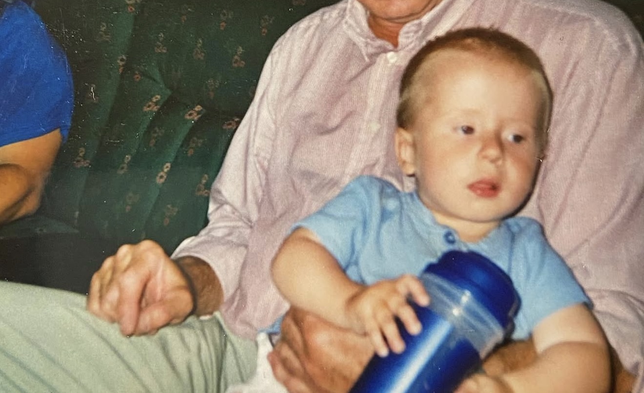 Foto: Bildet er av Tomas som 2-3 åring som sitter fanget med farfar sin.